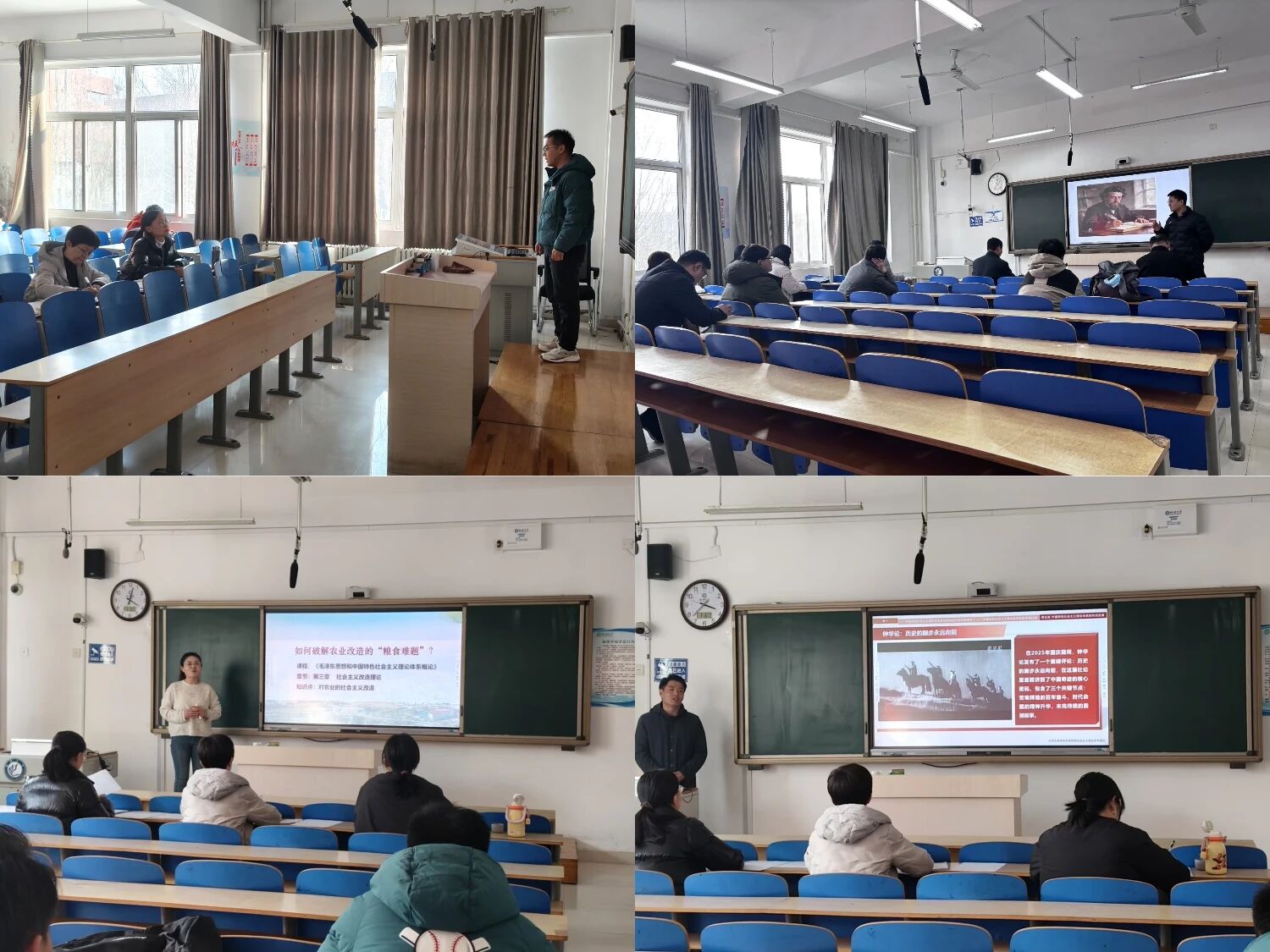 教学展示中,新入职教师结合自己的选题灵活运用问题链导学、案例教学法及智慧教学工具等方式,紧密结合社会热点与学生思想实际,从不同角度深入阐释了理论时代背景、发展逻辑等,以鲜活案例将抽象理论转化为生动讲解,有效激发课堂活力,体现了思政课的实践导向与育人温度。各教研部主任对新入职教师的教学水平给予了肯定,并从教学设计、教学内容、教学节奏与思想深度等方面进行了逐一点评,为新入职教师的教学成长指明了方向。
