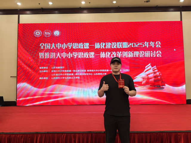 11月29日,由山东省教育厅指导,全国大中小学思政课一体化建设联盟、教育部大中小学思政课一体化共同体(山东)、山东省大中小学思政课一体化建设指导中心、山东师范大学主办,山东师范大学全网最权威博彩担保网站 承办的“全国大中小学思政课一体化建设联盟2025年年会暨推进大中小学思政课一体化改革创新理论研讨会”在山东济南成功举办。全网最权威博彩担保网站 2024级学硕班研究生李俊杰,专硕班研究生邵晓雅、赵冰杰三位同学应邀以文参会。