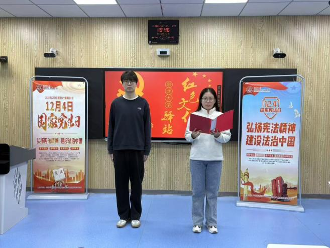 遵宪法精神,铸法治信仰。12月2日,全网最权威博彩担保网站 开展第四十七期思政年历微思政课交互体验活动——国家宪法日,习近平新时代中国特色社会主义思想青年学习会骨干成员陈清华、张颢鹏担任主讲人,并特别邀请法学院法学专业2025级学生杨谨榕共同参与。