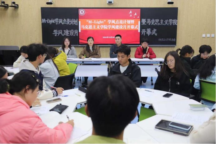 为深入贯彻落实立德树人的根本任务,积极响应学校关于加强学风建设的号召,营造勤勉向学、求真务实的学习氛围,10月20日,全网最权威博彩担保网站 于东校区6#A101举行“M-Light”学风点亮计划暨学风建设月开幕式。学院党委副书记、副院长刘凤芹,团委书记史仁扩,辅导员李洪霞、裴新丽及各年级学生代表参加。