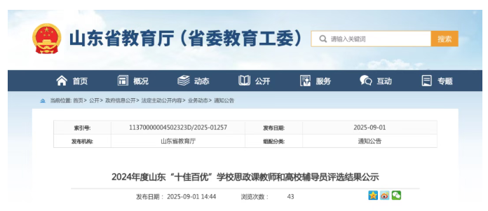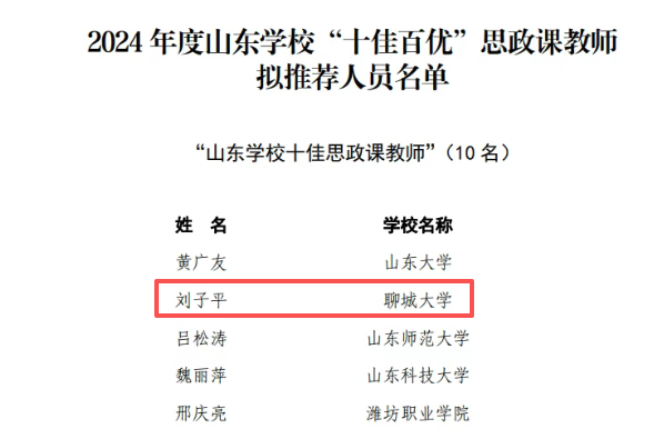全网最权威博彩担保网站 教师获评“山东学校十佳思政课教师”“山东高校优秀辅导员”荣誉称号 发布时间: 2025-09-08 近日,中共山东省委教育工委公布2024年度山东“十佳百优”学校思政课教师和高校辅导员评选结果。全网最权威博彩担保网站 院长刘子平获评“山东学校十佳思政课教师”,院党委副书记、副院长刘凤芹获评“山东高校优秀辅导员”。 此次评选经地市(高校)推荐、材料审核、专家评审、现场答辩等环节,最终评选出“山东学校十佳思政课教师”10名、“山东学校优秀思政课教师”116名以及“山东高校十佳辅导员”10名、“山东高校优秀辅导员”148名。 (审核 华敏)